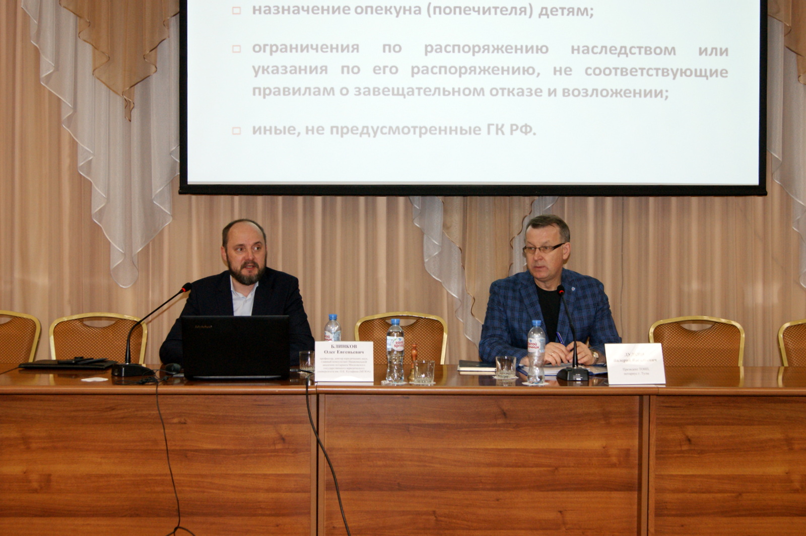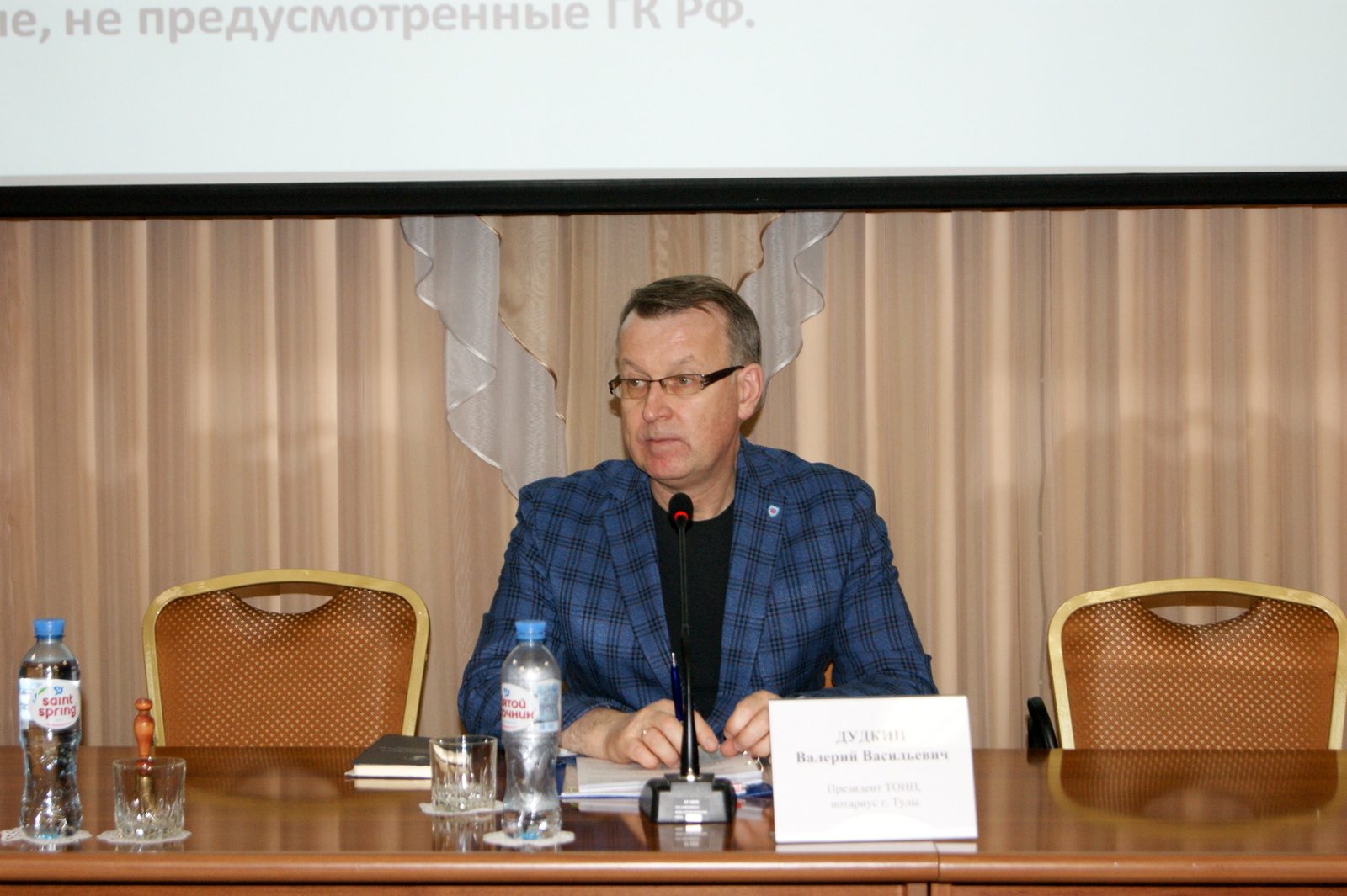 В завершение насыщенного рабочего дня Валерий Дудкин поблагодарил лектора и отметил актуальность выбранных для обсуждения тем и повышенный интерес к выступлению со стороны слушателей-представителей нотариата Тульской области.