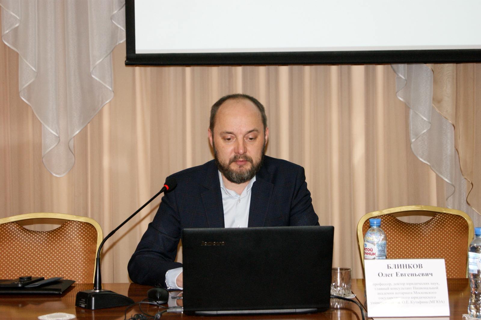 Для собравшихся с лекцией на актуальные темы, касающиеся нотариальной практики, выступил профессор, доктор юридических наук Олег Блинков.