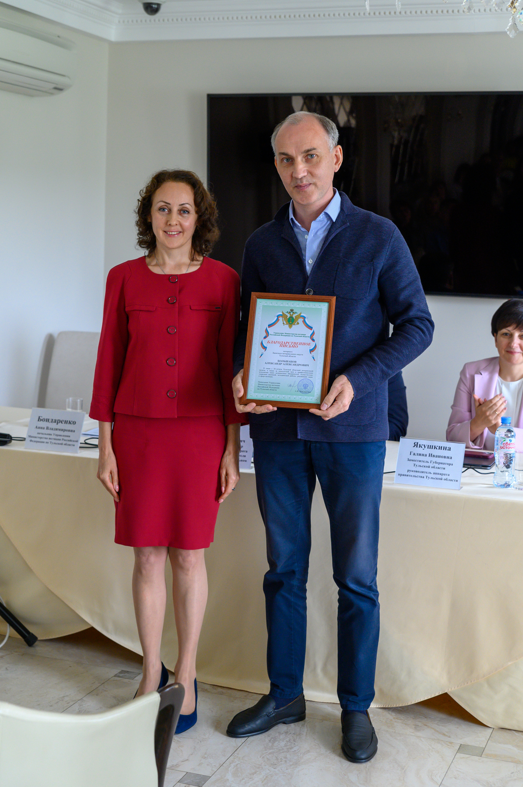 К поздравлениям присоединились приглашенные гости – заместитель Губернатора Тульской области, руководитель аппарата правительства Тульской области Галина Якушкина, федеральный инспектор по Тульской области аппарата полномочного представителя Президента Российской Федерации в Центральном федеральном округе Сергей Бабенко и начальник Управления Министерства юстиции РФ по Тульской области Анна Бондаренко. Представителям нотариата были вручены ведомственные и областные награды за многолетний добросовестный труд, активное участие в системе оказания бесплатной юридической помощи и успешную реализацию задач в сфере правового просвещения граждан.