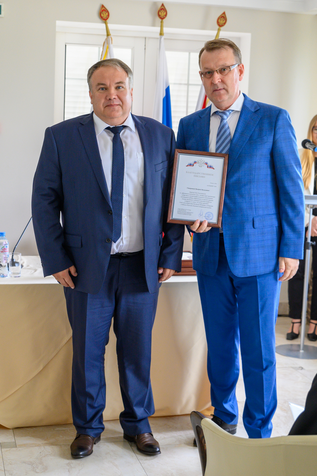 Медаль Юрия Иутина за безупречное служение и верность профессии К.А. Корсик вручил президенту Тульской областной нотариальной палаты Валерию Дудкину.